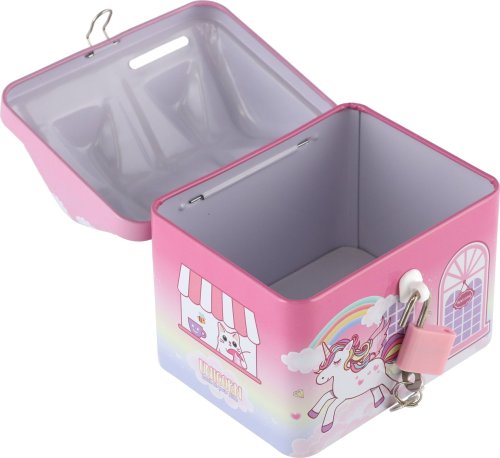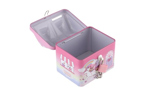 Za penízky se dá koupit tolik věcí, to ví přece každé malé dítě. Ale kam s nimi, aby se rychle nerozkutálely a hlavně, aby byly v bezpečí? Plechová pokladnička jednorožcem je bude střežit jako poklad. Zamknou se na zámek a klíčky se musí dobře schovat. Hlavně hodně daleko od zvědavých ručiček, které by pokladničku vybraly dřív, než bude úplně plná. Rozměr: 11 x 9 cm Vhondé od 14 let