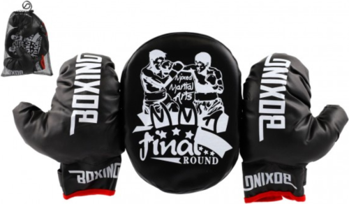 Dětská boxovací sada v síťce. Veďte své děti ke sportu. Jednoduchý nástroj jak zabavit unuděné děti, nebo vybít jejich energii. Určitě zažijete i spousty zábavy. Rozměry výrobku 22 x 33 x 14 cm. Vhodné pro děti od 3 let.