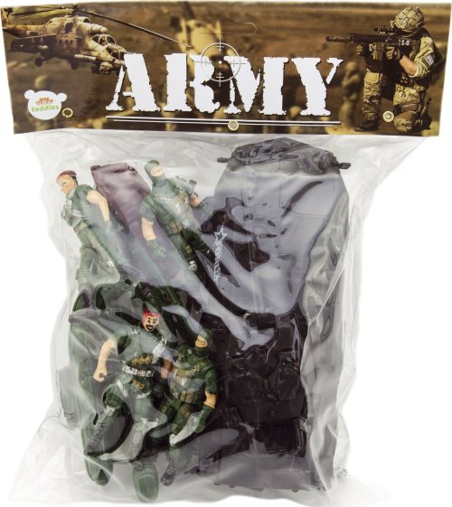 Sada obsahuje propracované postavičky vojáků se zbraněmi a doplňky. Určeno pro malé chlapce, kteří si rádi hrají na vojáky.