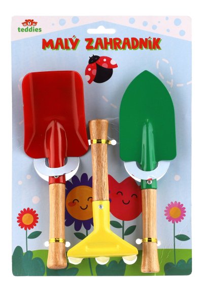 Sada zahradního nářadí je ideální venkovní hračkou, se kterou se děti hezky zabaví. V setu naleznou lopatičku, hrábě a rýč. Rozměr nářadí je cca 20 cm. Nářadí je vyrobeno z kovu, rukojeť je dřevěná a pohodlně se v malých dětských rukou drží. Se zahradním nářadím vám děti mohou pomoci připravit zahradu na jaro, přesadit rostliny do květináčů nebo se jinak zapojit do práce na zahradě. Ideální pomocník pro malé zahrádkáře! Rozměr nářadí: 15 - 21 cm Rozměr balení: 19 x 27 cm Vhodné pro děti od 3 let
