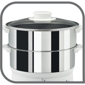 Parní hrnec nesmí chybět v žádné domácí kuchyni. Společnost Tefal patří mezi přední výrobce kuchyňských spotřebičů, volbou parního hrnce od této značky proto sázíte na osvědčenou klasiku. Zařízení disponuje velkým objemem 6 litrů, hodí se proto i do větších rodin, kde je potřeba vařit velké porce, aby si každý mohl naplno pochutnat. Abyste nemuseli hrnec neustále hlídat, lze aktivovat časovač. Pootočením ovládacího knoflíku máte možnost nastavit si dobu až na 60 minut, po jejímž uplynutí se přístroj sám automaticky vypne.