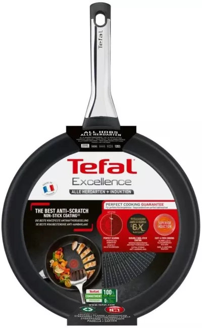 Nezaměnitelný prskavý zvuk kuřecího masa vloženého do pánve, rachocení nádobí, rychlý pohyb vařečky přesně ve správnou chvíli. Extrémní vaření si žádá pánev, která ustojí extrémní podmínky. Pánev Tefal Excellence spojuje zcela nový povrch TITANIUM 6X ANTI-SCRATCH s vynikající nepřilnavostí a odolností, která zvládne i kovové náčiní, a zvláště silným dnem THERMO-FUSION™+, které povýší vaše výsledky v kuchyni na novou úroveň.