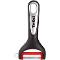 Škrabka ve tvaru Y S flexibilní otočnou čepelí Ochranný kryt umožňuje bezpečné a snadné uskladnění Vhodné do myčky pro snadné čištění V černé a červené barvě