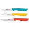 Sada kuchyňských nožů 3 ks Z nerezové oceli Vroubkovaného univerzálního nože o délce 10 cm Vykrajovacího nože o délce 8 cm Vroubkovaného vykrajovacího nože o délce 8 cm Ve žluté, modré a červenébarvě