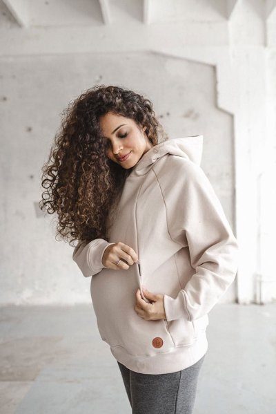 Těhotenská a kojící mikina Motherhood oversize milk & love. Hrubá oversize těhotenská mikina ideální pro velmi chladné dny. Materiál zakončená zevnitř nádherně jemným chmýřím skvěle drží teplo. Zároveň - díky vysokému obsahu bavlny - nedovolí přehřátí pokožky. Díky oversize střihu se mikina přizpůsobí rostoucímu bříšku. Do mikin jsme všili kvalitní kryté zipy s jezdcem otevíraným zespodu. Díky tomu si můžete upravit velikost otvoru tak, aby pro vás bylo krmení na jakémkoli místě pohodlné. Má dvě prostorné kapsy. Po nakrmení můžete zipy zasunout dovnitř - pak zip zmizí a mikina vám může nadále sloužit jako běžná mikina, (pozor, nezavírejte je, pokud budete pokračovat v krmení, protože později je velmi obtížné zipy dostat ven. Po porodu se vrací do původního tvaru. Rozměrová tabulka je poslední fotografie. Při výběru velikosti kojící/tehotenské mikiny se řiďte velikostí, kterou právě nosíte. Pamatujte, že mikina má oversize střih a je docela prostorná. Složení: 80% bavlna, 8% polyester.