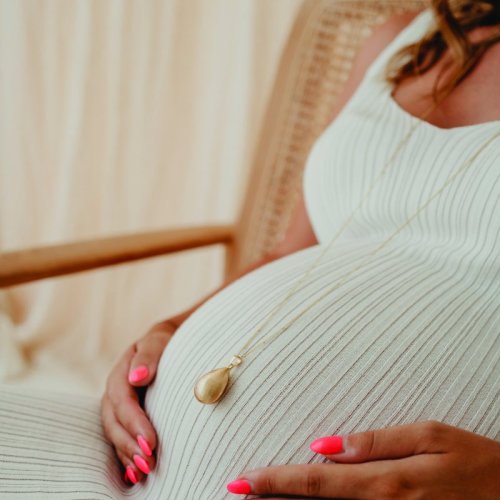 • nosí se na delším řetízku/šňůrce tak, aby se přívěsek pohyboval na bříšku těhotné ženy