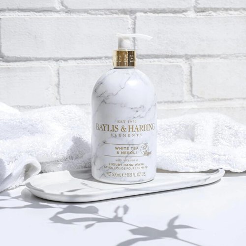 Jemná směs bílého čaje, neroli, šťavnatých citrusů a hrušky, zkombinovaná s jemnými růžemi, kyticí frézií a tóny pižma. Taková je vůně mýdla ze sofistikované kolekce inspirované přírodními elementy. Zaručuje dlouhotrvající vůni a slouží jako elegantní doplněk bytu. Mýdlo nevysušuje pokožku rukou a zanechává ji sametově jemnou a vyživenou.