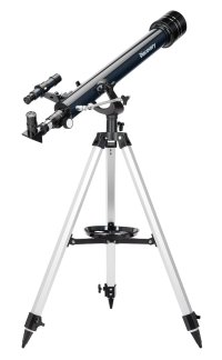 Díky manuálnímu alt-azimutálnímu ovládání je teleskop vhodný i pro začátečníky. Jednoduše ho nasměrujete pomocí vidlice s aretačním knoflíkem na svislé ose. Hliníkový stativ s praktickou přihrádkou na příslušenství umožňuje pohodlné pozorování bez nutnosti držet dalekohled v ruce. Sada obsahuje 3 okuláry s rozdílnými ohniskovými vzdálenostmi, okulár pro vzpřímený obraz, Barlowovu čočku, diagonální zrcátko a další šikovné příslušenství.