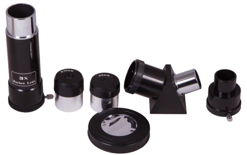 obsahuje okuláry 67x a 20x, Barlowovu čočku 3x a sluneční filtr.