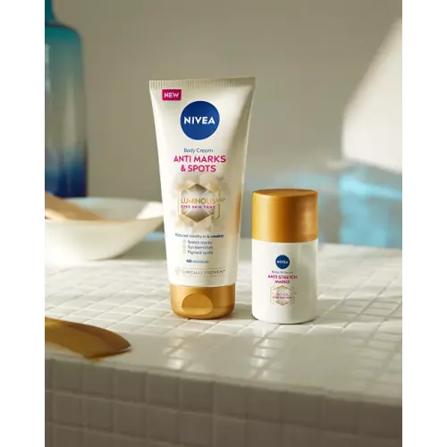 Toužíte po sjednocené pokožce, kterou se nebudete stydět ukázat? Dopřejte jí pořádnou péči, která přesně zacílí na její palčivá místa. Pečující složení ji bude nejen hýčkat, ale posvítí si na strie, skvrny od slunce a jiné pigmentové skvrny. Díky patentované látce LUMINOUS630 tělový krém sjednocuje tón pokožky a redukuje viditelnost strií i pigmentových skvrn již za 4 týdny pravidelného používání. Navíc pokožku okamžitě intenzivně vyživí. A to tak, že se bude cítit skvěle hydratovaná až 48 hodin.