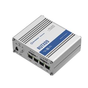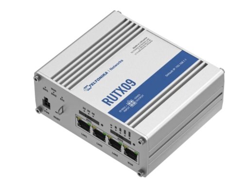 RUTX09 je LTE-A Cat 6 celulární IoT router s dual-SIM, agregací operátorů a čtyřmi gigabitovými ethernetovými rozhraními. Je navržen jako primární nebo záložní zdroj internetu a může nabídnout mobilní rychlost až 300 Mb/s s vysokou datovou propustností.