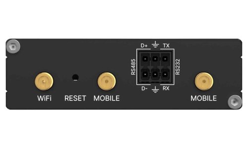 Tento model je vybaven bezdrátovým připojením 4G a Wi-Fi, dvěma SIM sloty, 2 ethernetovými porty a sériovým rozhraním RS-232 a RS-485, takže je ideální pro rychlé nastavení primárního a záložního připojení s možností vzdálené správy. Montáž možná na DIN lištu, zeď nebo na rovný povrch (držáky nejsou součástí balení).