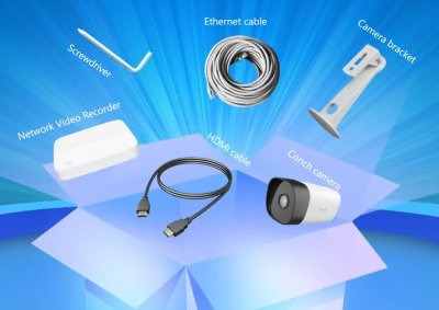 Obsah balení 1x NVR PoE rekordér 8x PoE kamera 8x Držák na stěnu/strop pro kamery 1x Napájecí adaptér 51V DC 1,2A pro rekordér 2x Sada šroubů (1x pro NVR, 1x pro veškeré kamery) 1x USB myš 8x Voděodolné krytky 1x Šroubovák 1x HDMI kabel 1x nálepka CCTV 1x Ethernet kabel 1 m 4x Ethernet kabel 18 m 4x Ethernet kabel 30 m 1x Stručná instalační příručka
