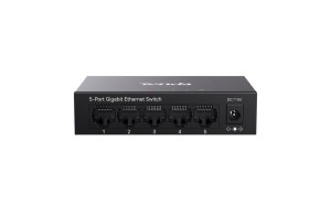 Switch 5x 10/100/1000 Mb/s, Auto MDI/MDIX, Fanless - pasivní chlazení bez ventilátoru, non-blocking architektura, 2K MAC adresace, přepínací kapacita 10 Gb/s. Kovový obal. Externí zdroj.