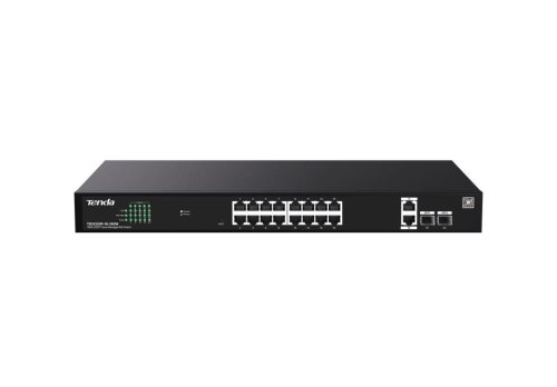 Tenda TEG2220P-16-250W je 18ti portový Gigabitový PoE L2 Websmart + Cloud switch. 16x 10/100/1000 Mb/s PoE 802.3af/at (celkem 230W) + 2x SFP 1000Mb/s. Podporuje webový + cloud management, QVLAN, IGMP, DHCP snooping, DHCP client, IGMP fast leave, Storm control, Anti-ring, Speed limit, Port mirroring + aggregation. Rackmount. Součástí balení je český, slovenský a polský manuál.