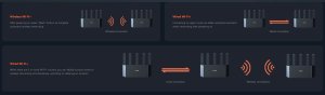 Dvoupásmový router - podpora 2,4 a 5GHz Výhod využití obou pásem je hned několik. Samozřejmostí je prohlížení webových stránek, stahování souborů, emaily apod. ale u díky dvěma pásmům také hraní náročných Online her, HD / FullHD / 4K / 8K streamování videa a zvláště aplikace kde je důležitá latence. Pásmo 2,4GHz také bývá ve větších zástavbách nebo panelových domech velmi zarušené, a dochází tak k degradaci výkonu na nižší úroveň, při použití i 5GHz vám tato starost zcela odpadá. Pokrytí signálem je zajištěno pomocí pěti 6 dBi antén. Je možné také využít režim Repeater. Součástí je nastavení síly signálu pro každou frekvenci zvlášť. Router TX12L Pro sám automaticky zvolí ideální síť pro koncové zařízení.