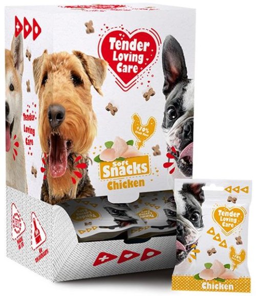 Pamlsky Duvo+ Tender Loving Care jsou velmi chutné a měkké pamlsky pro psy. Jsou vyráběny v EU a neobsahují žádná umělá barviva ani aromata. Tato bezlepková varianta se kuřetem obsahuje víc než 70 % čerstvého masa, rýže a oreganového oleje pro optimální strukturu a chuť. Hypoalergenní pamlsek bez genetických modifikací je ideální pro trénink psa. Jsou vhodné pro všechny psy od šesti měsíců. Výhody: Vysoký obsah čerstvého masa (70 %). Bez umělých aromat a barviv. Vyrobeno v EU. Bezlepkové, bez GMO a hypoalergenní. Ideální na trénink. Složení: Maso a produkty živočišného původu (30,6 % kuřecí), obiloviny (7,7 % rýže), vedlejší výrobky rostlinného původu, minerální látky. Analytické složky: Hrubý protein 24,1 %, obsah tuku 10,2 %, hrubá vláknina 1,36 %, hrubý popel 12,0 %. Doplňkové látky: obsahuje EU povolená konzervanty a antioxidanty. Krmný návod: Doporučujeme podávat pod dohledem, slouží jako doplnění běžné krmné dávky. Zajistěte psovi vždy dostatek pitné vody. Není určeno pro lidskou spotřebu.