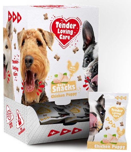 Pamlsky Duvo+ Tender Loving Care jsou chutné a měkké pamlsky pro psy. Jsou vyráběny v EU a neobsahují žádný umělá barviva ani aromata. Tato bezlepková varianta s kuřecím masem a šunkou serrano pro štěňata do 1 roku má vysoký obsah masa a je speciálně upravená pro mladé psy. Hypoalergenní přípravek bez genetických modifikovaných organismů je ideálním pro trénink s Vaším štěnětem. Tender Loving Care je vhodnou variantou pamlsků pro všechny štěňátka od 2 měsíců. Výhody: Vysoký obsah čerstvého masa (64 %). Bez umělých aromat a barviv. Vyrobeno v EU. Bezlepkové, bez GMO a hypoalergenní. Ideální na trénink. Složení: Maso a produkty živočišného původu (28,2 % kuře, 23,0 % šunka), obiloviny (7,05 % rýže), vedlejší výrobky rostlinného původu, mléko a mléčné výrobky, minerální látky. Analytické složky: Hrubý protein 25,2 %, obsah tuku 11,9 %, hrubá vláknina 1,47 %, hrubý popel 12,2 %. Doplňkové látky: obsahuje EU povolená konzervanty a antioxidanty. Krmný návod: Doporučujeme podávat pod dohledem, slouží jako doplnění běžné krmné dávky. Zajistěte psovi vždy dostatek pitné vody. Není určeno pro lidskou spotřebu.