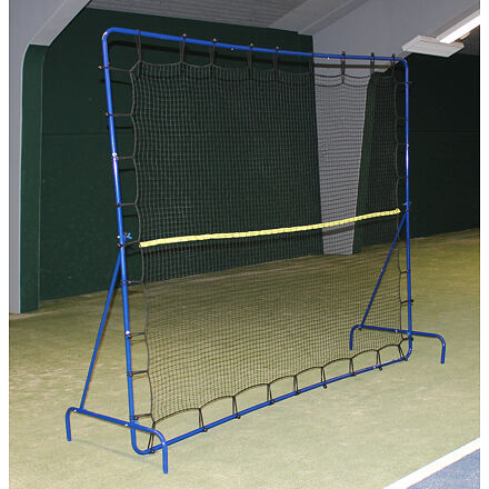 Tenisová odrazová stěna Tennis Slam Rebounder je vhodná pro všechny výkonnostní hráče tenisu - od juniorů až po pokročilé. Kovová odrazová stěna je v modrém provedení a její rozměry jsou 270 x 220 x 90 cm. Stěna má z obou bočních stran kovové stojany pro lepší stabilitu. Součástí balení je síť a elastické úchyty, kterými napnete a připevníte síť ke konstrukci. Konstrukci postavíte během pár minut díky zasouvacím trubkám a šroubům. Uprostřed napnuté sítě se nachází žlutá páska, která označuje střed a simuluje tak výšku pravé tenisové sítě. Hráč si tak může zkoušet různé druhy úderů, zlepšovat reakci, techniku, a míček se mu pokaždé vrátí zpět. Výhodou odrazových stěn je, že k trénování nepotřebujete parťáka a můžete trénovat kdekoliv – venku nebo uvnitř v hale. Parametry: rozměry: 270 x 220 x 90 cm hmotnost: 20 kg barva: modrá