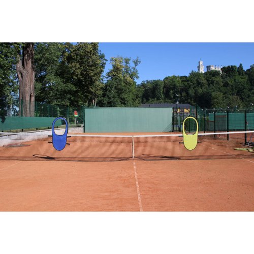 Set dvou terčů Merco Tennis Target je skvělá tréninková pomůcka pro tenisové hráče všech výkonnostních úrovní, pro individuální tréninky, lekce s trenérem i zábavné soutěže během tenisových kempů. Tento lehký a snadno přenosný terč se připevní na tenisovou síť suchými zipy a okamžitě vytvoří jasný cíl pro nácvik přesných servisů a returnů. Je vyrobený z polyesterové tkaniny se skládacím rámem ze sklolaminátu a je dodávaný v praktickém obalu pro snadné přenášení a skladování. - sada: 2x skládací terč - materiál: polyester, sklolaminát - POP-UP systém, rychlá montáž pomocí suchých zipů - součástí praktický vak - pro tenisové hráče všech výkonnostních úrovní - ideální pro individuální tréninky, lekce s trenérem i zábavné soutěže během tenisových kempů - rozměry terče: 122 x 59 cm - rozměry otvoru: 58 x 43 cm - rozměry balení: 52 x 52 x 3 cm - hmotnost balení: cca 300 g