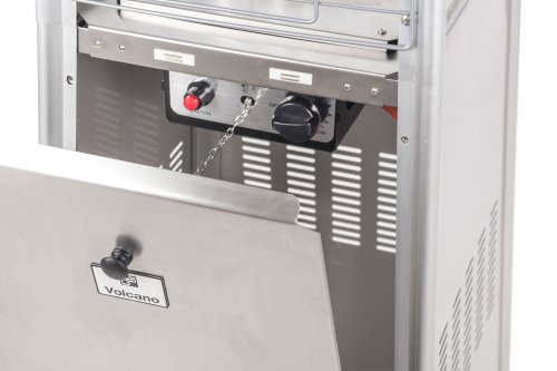 Ovládání je snadné, stačí jen napojit tepelný zářič na 10 kg propan butanovou lahev, pro jejíž ukládání je prostor ve stojanu teplometu. Pak zmáčknete tlačítko mechanického piezo elektrického zapalování a exteriérový tepelný zářič Volcano začne hřát.