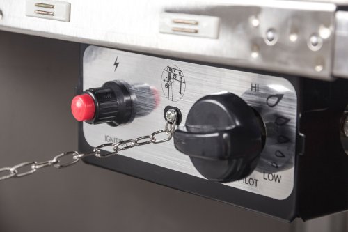 Kvůli bezpečnosti je tepelný plynový zářič jištěn pojistným bezpečnostním ventilem, který zastaví přívod plynu při případném převrácení topidla.