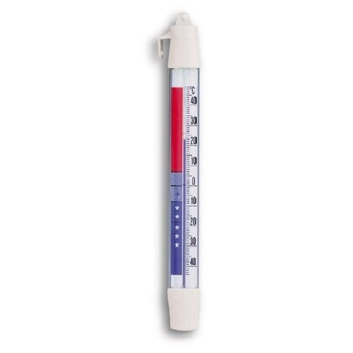 Podlouhlý plastový teploměr do chladniček a mrazniček, kde Vám pomůže udržet Vaše potraviny v ideální teplotě.