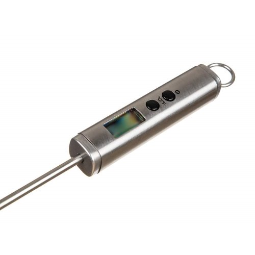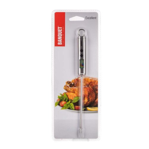 Teploměr na maso digitální EXCELLENT je velmi praktický pomocník do kuchyně. Celková délka výrobku je 22 cm. Napájení baterií 1 x LR44 (baterie není součástí položky). Kuchyňský digitální teploměr má dlouhou nerezovou sondu s čidlem, která se dá jednoduše zasunout do jakéhokoliv jídla a zjistit tak aktuální teplotu. Možnosti měření ve st. C a st. F. Rozsah měření -30 st. C do 250 st. C / -22 st. F do 482 st. F. EAN 8591022487556