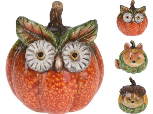 Barevné podzimní dekorace z terakoty v podobě sovy, lišky nebo ježka vdechnou prostoru hřejivou a hravou atmosféru. Ideální do dětského pokoje, na parapet nebo jako sezónní dekorace na stůl. Mix variant dle aktuální dostupnosti. Zboží je dodáváno v mixu. Doručované zboží je vybíráno náhodně a nelze vybrat konkrétní provedení.