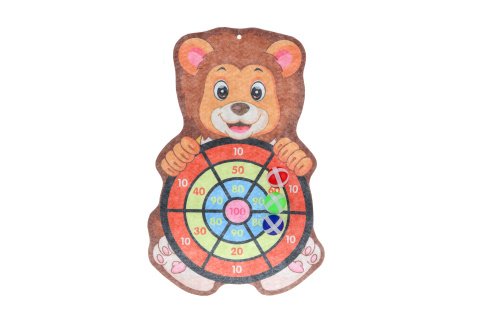Krásný terč na suchý zip. Balení obsahuje terč, 3 míčky a háček k zavěšení. Baleno v sáčku. Rozměry terče cca 28x42 cm. Velikost míčku 3,5 cm. Věk 3+