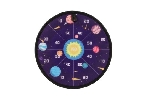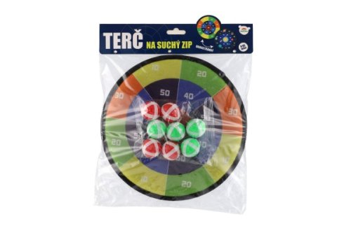 Terč na suchý zip dostane kluky i holky. Je to veselá hra, při které se vaše děti naučí mířit a házet . Nechte vaše děti soupeřit mezi sebou. Cílem hry je hodit co největší čísla. Jejich sčítáním se děti procvičí i v matematice. Terč na suchý zip má dva designy. Jedna strana terče je barevná s čísly, druhá je v motivu vesmíru s čísly. Terč má očko na zavěšení. Balení obsahuje: Terč na suchý zip oboustranný + 8 ks míčků se suchým zipem. Průměr terče: 27 cm Vhodné pro děti od 3 let