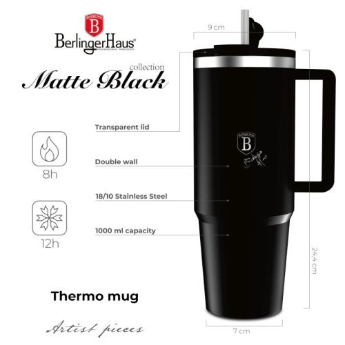 Tento termohrnek v matné černé barvě je perfektní volbou pro všechny, kteří ocení kombinaci praktického designu a kvalitního provedení. Díky dvojité stěně s mědí mezi vrstvami udržuje nápoje teplé i studené po dlouhou dobu. Je vybaven brčkem pro pohodlné pití, a jeho robustní konstrukce z nerezové oceli zajišťuje odolnost a dlouhou životnost.