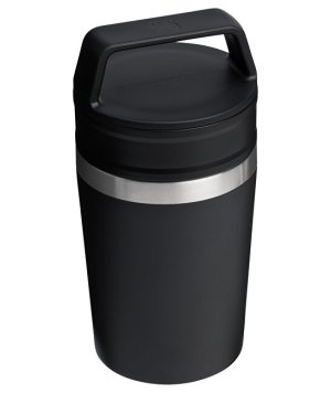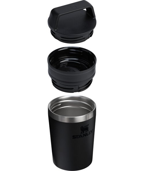 Nerezový Termohrnek The Café-To-Go Travel Mug v černé barvě - na sport, na pláž, do posilovny, do auta, na dovolenou. Tam všude se vám STANLEY 1913 Termohrnek The Café-To-Go může hodit. Svojí praktičností, praktickým madlem na nošení a dostatečným objemem. Lze jej mýt v myčce nádobí a má veškerou odolnost, na kterou se u značky Stanley 1913 můžete spolehnout. Uvnitř tohoto designového kousku se skrývá robustní konstrukce z potravinářské nerezové oceli s dvoustěnnou vakuovou izolací, která udržuje nápoje chladné až 4 hodin nebo horké 3 hodiny. Unikátní systém umožňuje použít buď jen jedno nebo obě víčka: