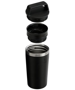 Nerezový Termohrnek The Café-To-Go Travel Mug v černé barvě - na sport, na pláž, do posilovny, do auta, na dovolenou. Tam všude se vám STANLEY 1913 Termohrnek The Café-To-Go může hodit. Svojí praktičností, praktickým madlem na nošení a dostatečným objemem. Lze jej mýt v myčce nádobí a má veškerou odolnost, na kterou se u značky Stanley 1913 můžete spolehnout. Uvnitř tohoto designového kousku se skrývá robustní konstrukce z potravinářské nerezové oceli s dvoustěnnou vakuovou izolací, která udržuje nápoje chladné až 5 hodin nebo horké 4 hodiny. Unikátní systém umožňuje použít buď jen jedno nebo obě víčka: