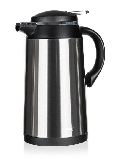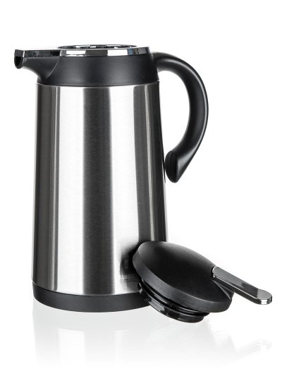 objem: 1 l průměr: 13 cm výška: 26 cm mateirál: nerez, plast PP (víčko a držadlo), pochromovaný ABS plast, silikonové těsnění, skleněná vložka (bezazbestová)