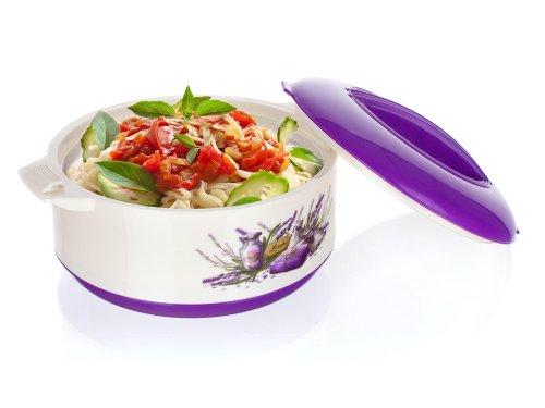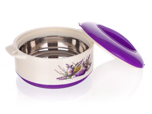 Termomísa LAVENDER s poklicí, je praktický pomocník vhodný pro uchovávání a přenášení horkých i studených pokrmů. Je vyrobena z kvalitního odolného plastu, s dekorem levandule. Vnitřek mísy tvoří nerezová vložka, výplň mezi stěnami je z PUR pěny pro zachování vynikající izolace při skladování či přenášení potravin. Ocení ji hlavně kuchaři a kuchařky při uskladnění hotových pokrmů před samotným servírováním.