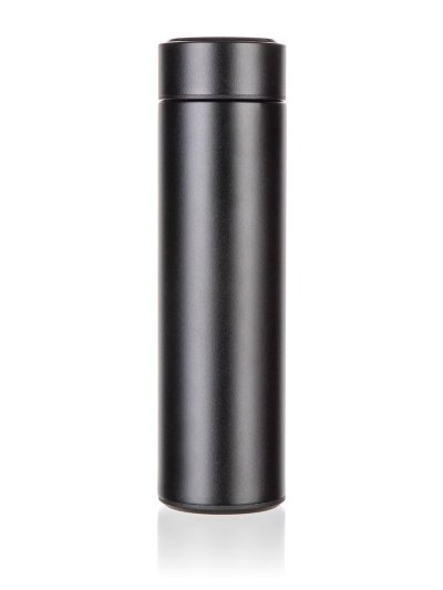 Termoska 0,47 l TREK, s teploměrem, nerez ČER. objem: 0,47 l průměr: 6,5 cm výška: 23,5 cm materiál: nerez, plast, silikon barva: černá Cestovní chytrá termoska TREK BT o objemu má vnější i vnitřní povrch …
