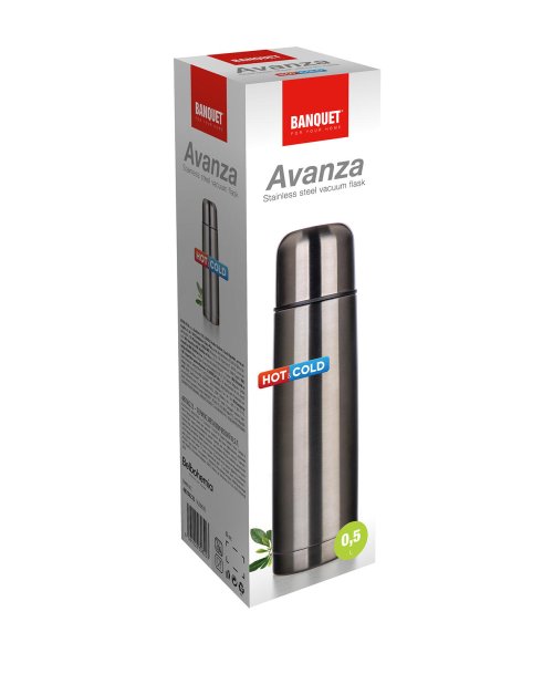 Nerezová termoska AVANZA Metallic Black. Nerezové termosky jsou velmi odolné a bezpečné, nehrozí rozbití vložky či opaření při manipulaci. Teplotní pokles je závislý na teplotě nápoje při plnění, množství nápoje, teplotě okolí.