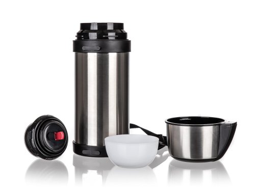 Součástí termosky je plastové držadlo a popruh pro pohodlné nošení.