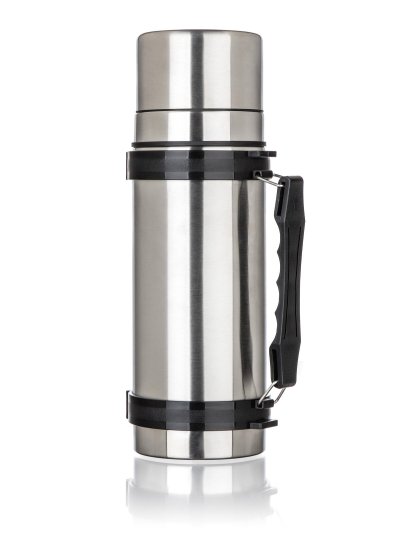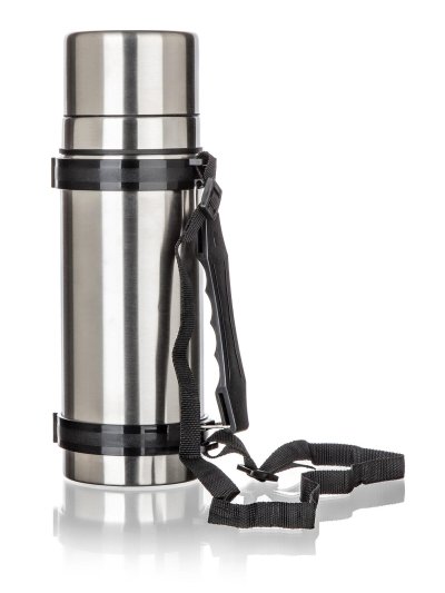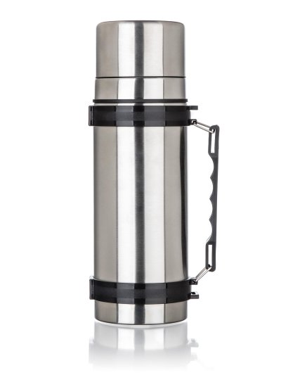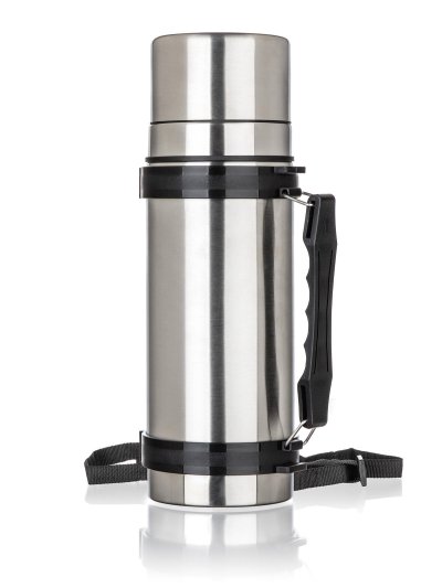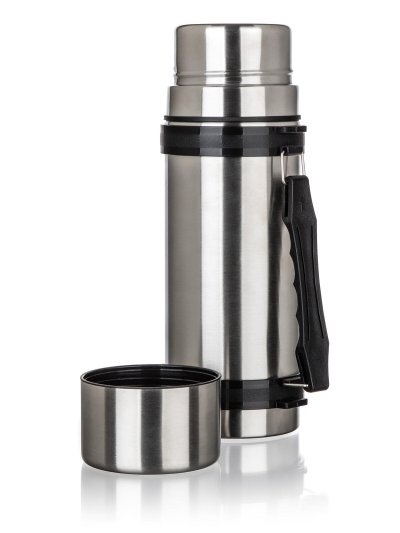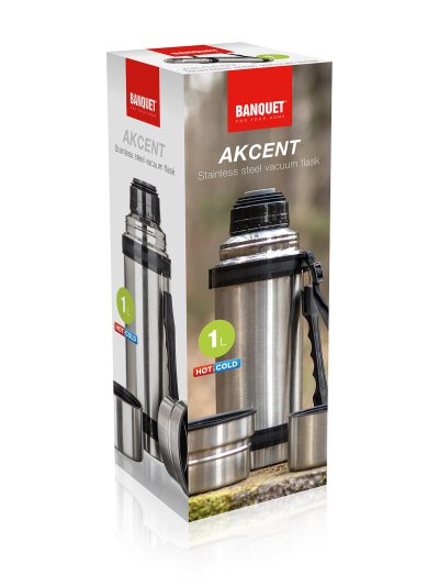 Nerezová cestovní termoska AKCENT o objemu 1 l, má dvouplášťové provedení, vnější i vnitřní povrch je vyroben z nerezu.