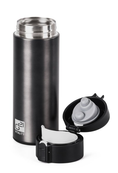 Víčko termoláhve G21 nejenže výborně těsní, ale navíc umožňuje i pohodlné pití přímo z lahve. Díky praktické a spolehlivé bezpečnostní pojistce víčka se vám termohrnek G21 sám od sebe neotevře, takže jej můžete bez obav položit i do kabelky nebo batohu.