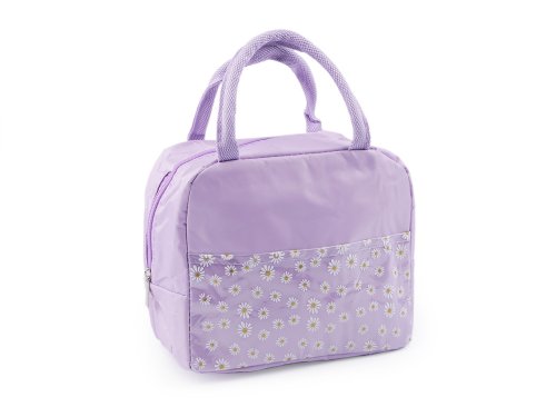 Malá skládací termotaška je skvělým společníkem na výlety, do školy i do práce. Uchovává potraviny po určitou dobu při stejné teplotě. Na přední straně má transparentní plochou kapsu s potiskem květů. Ve středu jsou květy ozdobené třpytivými glitry. V hlavním úložném prostoru je izolační vrstva, která je omyvatelná. Díky širokému dnu má dobrou stabilitu. Zapíná se na zip, nahoře má ucha na pohodlné přenášení.