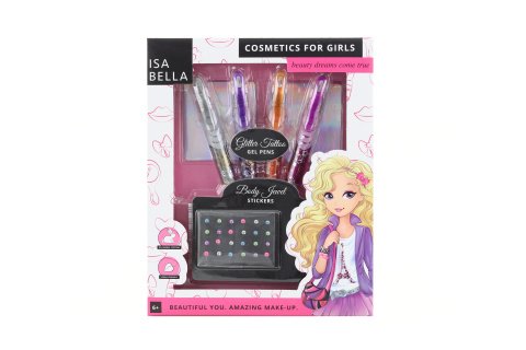 Tetovací sada pro holčičky. Obsahuje 4 třpytivá tetovací pera a doplňky. Rozměry balení cca 17x21x2,5 cm. Věk 6+