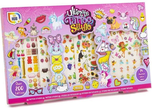 Objevte kouzlo dočasných tetování se sadou Tetovací studio Růžové, která nabízí přes 200 originálních motivů.