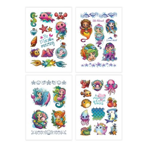 Ozdobte si své tělo krásným barevným tetováním. Vystřihněte vybraný obrázek. Přitiskněte ho na čistou a suchou pokožku Navlhčete ho vodou a po 30ti sekundách odstraňte papírek. Tetování lze odstranit mýdlem nebo olejíčkem. Vybrat si můžete z několika motivů podmořského života. Obsahuje 4 listy tetovaček. Rozměry balení 11,5 x 20 x 0,01 cm. Vhodné pro děti od 3 let.