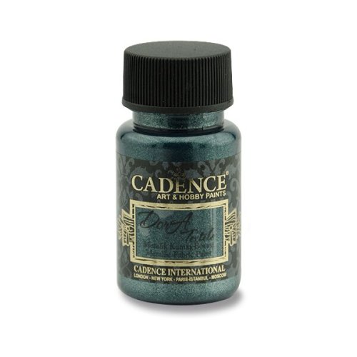 Výjimečně třpytivá textilní barva s metalickými odlesky. Barva je krycí, má jemnou pastovitou konzistenci., TIPY NA POUŽITÍ, Na textilie se nanáší volně štětcem nebo tupováním přes šablonu. Jednotlivé odstíny lze mezi sebou míchat a vytvořit tak efektní barevné přechody. Barvu nechte volně zaschnout 24, hodin. Zafixujte důkladným zažehlením přes pečící papír. Praní z rubu na 40 °C nebo ručně. Péče o pomůcky: za mokra umyjte šablony, štětce, nebo razítka vodou a kartáčkem., Přečtěte si pár tipů >>, jak používat barvy na textil Cadence