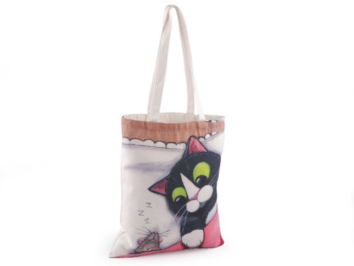 Textilní taška bavlněná kočka 34x40 cm - krémová nejsvět. myš