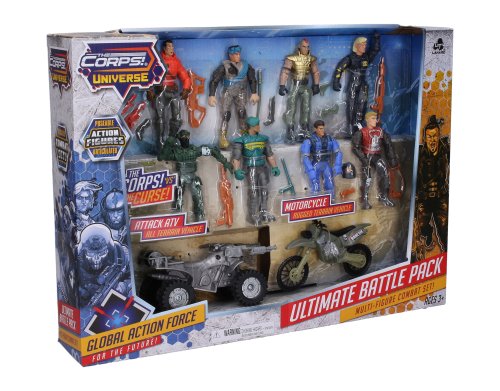 The Corps Vojáci s motorkou sada 8 figurek. Obsah balení - 8 figurek vojáků 11 cm, motorka 13cm, čtyřkolka 14 cm.