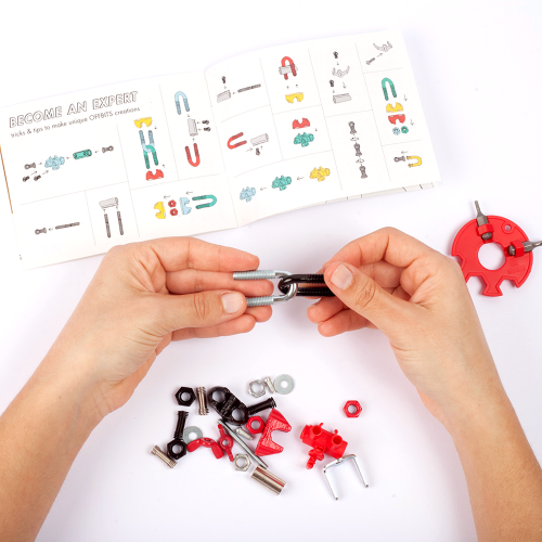 Seznamte se s ArtBitem, kuchařem a robotem plným kreativních nápadů, který je hlavním mozkem milionů vynálezů. Tento robot, který obsahuje sortiment barevných matic, šroubů a tvarově tvarovaných dílů, má dar vytváření. Popusťte uzdu své fantazii. Tato sada umožňuje vytvoření tří modelů s dalšími nekonečnými možnostmi pro vaše vlastní kreativní nápady. Jedná se o hračku, která pomáhá mladým lidem růst v oblastech vědy, technologie, inženýrství, umění a matematiky. Hračky OffBits také podporují rozvoj jemné motoriky, prostorové představivosti, řešení problémů a nápadité hry. Co můžete postavit:ArtBit, robota dítěBit, a SfingaBit plus nekonečné množství jedinečných výtvorů, které můžete postavit pomocí své fantazie. Máte kolem sebe karton, šroubky nebo jiné zábavné materiály? Vylepšujte s předměty každodenní potřeby a vytvořte také své vlastní jedinečné vynálezy. Hlavní vlastnosti: obsahuje nářadí pro sestavení stavebnicekompatibilnost s každodenními předmětyrozvoj kreativity, jemné motoriky i logického myšlenívhodné od šesti let3 v 1
