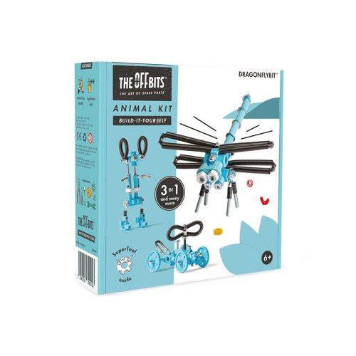 Seznamte se s rychlým a okouzlujícím DragonflyBit. Toto fascinující stvoření se svými čtyřmi velkými křídly létá neuvěřitelnou rychlostí a bez námahy chytá mouchy a komáry. Tento neuvěřitelný hmyz je tvořen řadou barevných matic, šroubů a tvarovaných kousků. Popusťte uzdu své fantazii. Tato sada umožňuje vytvoření tří modelů s dalšími nekonečnými možnostmi pro vaše vlastní kreativní nápady. Jedná se o hračku, která pomáhá mladým lidem růst v oblastech vědy, technologie, inženýrství, umění a matematiky. Hračky OffBits také podporují rozvoj jemné motoriky, prostorové představivosti, řešení problémů a nápadité hry. Co můžete postavit:DragonflyBit, TrackerBit a RazorBit plus nekonečné množství jedinečných výtvorů, které můžete postavit pomocí své fantazie. Máte kolem sebe karton, šroubky nebo jiné zábavné materiály? Vylepšujte s předměty každodenní potřeby a vytvořte také své vlastní jedinečné vynálezy. Hlavní vlastnosti: obsahuje nářadí pro sestavení stavebnicekompatibilnost s každodenními předmětyrozvoj kreativity, jemné motoriky i logického myšlenívhodné od šesti let3 v 1 Ilustrační foto balení: